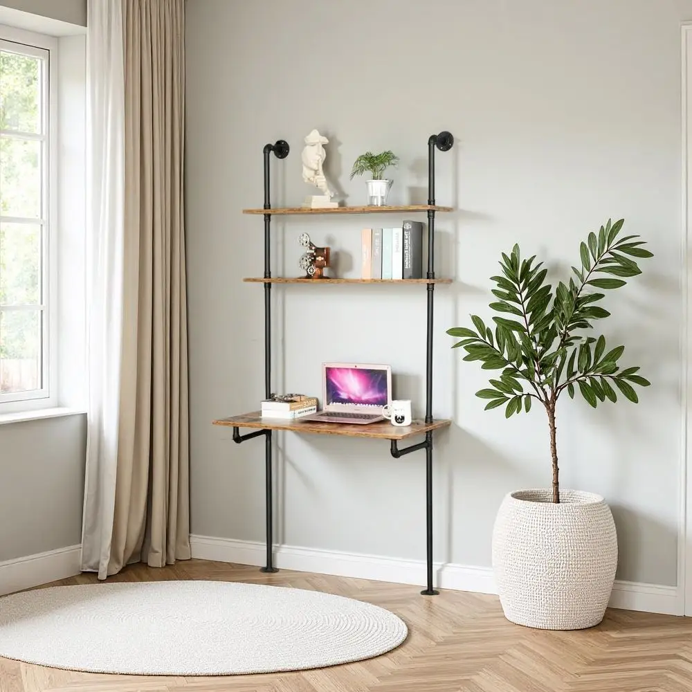Wall-Mounted Desk with Shelves, Ladder Style Laptop Desk, Floating Storage Table, Industrial Pipe Bookcase for Home Office (36x2 $135.37
