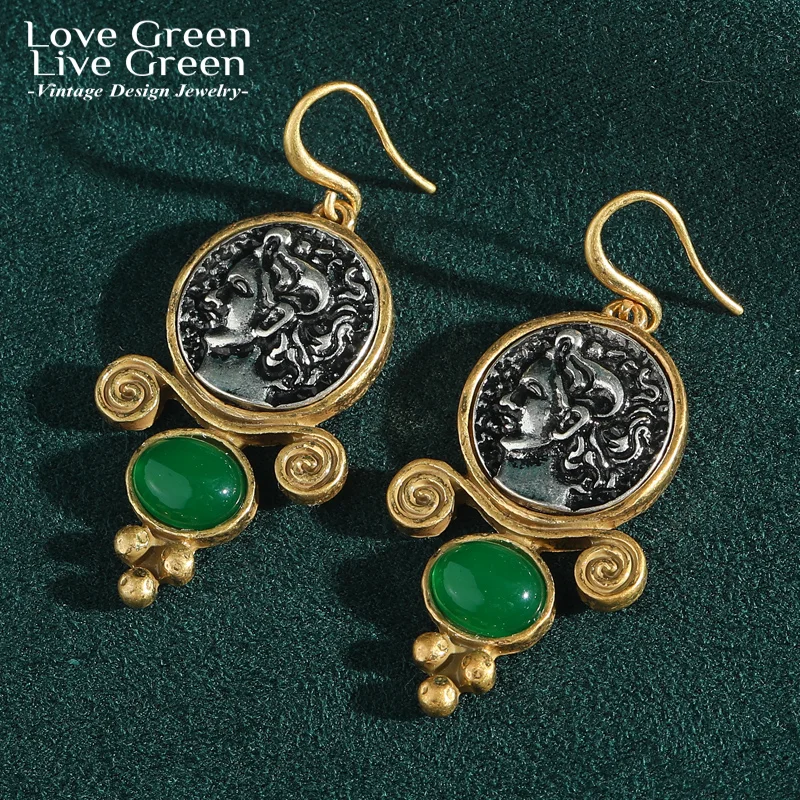 Vintage Green Agate Ancient Coins Drop Earring Old Money Antique Gold Color Jewelry Trends 2025 High Quality Party Wedding New $11.87
