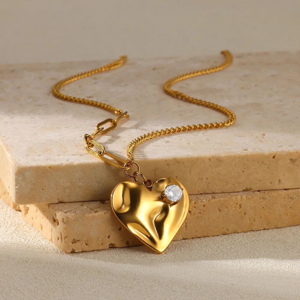 Geometric Heart Pendent Necklace for Women Gold Plated Stainless Steel Necklaces Trend 2026 Fashion Jewelry Freeshipping Wholesa $4.16