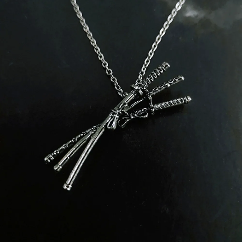 New Retro Anime Same Simple Niche Trend Necklace Japanese Samurai Sword Pendant Necklace Men and Women Fashion Pendant Jewelry $3.79