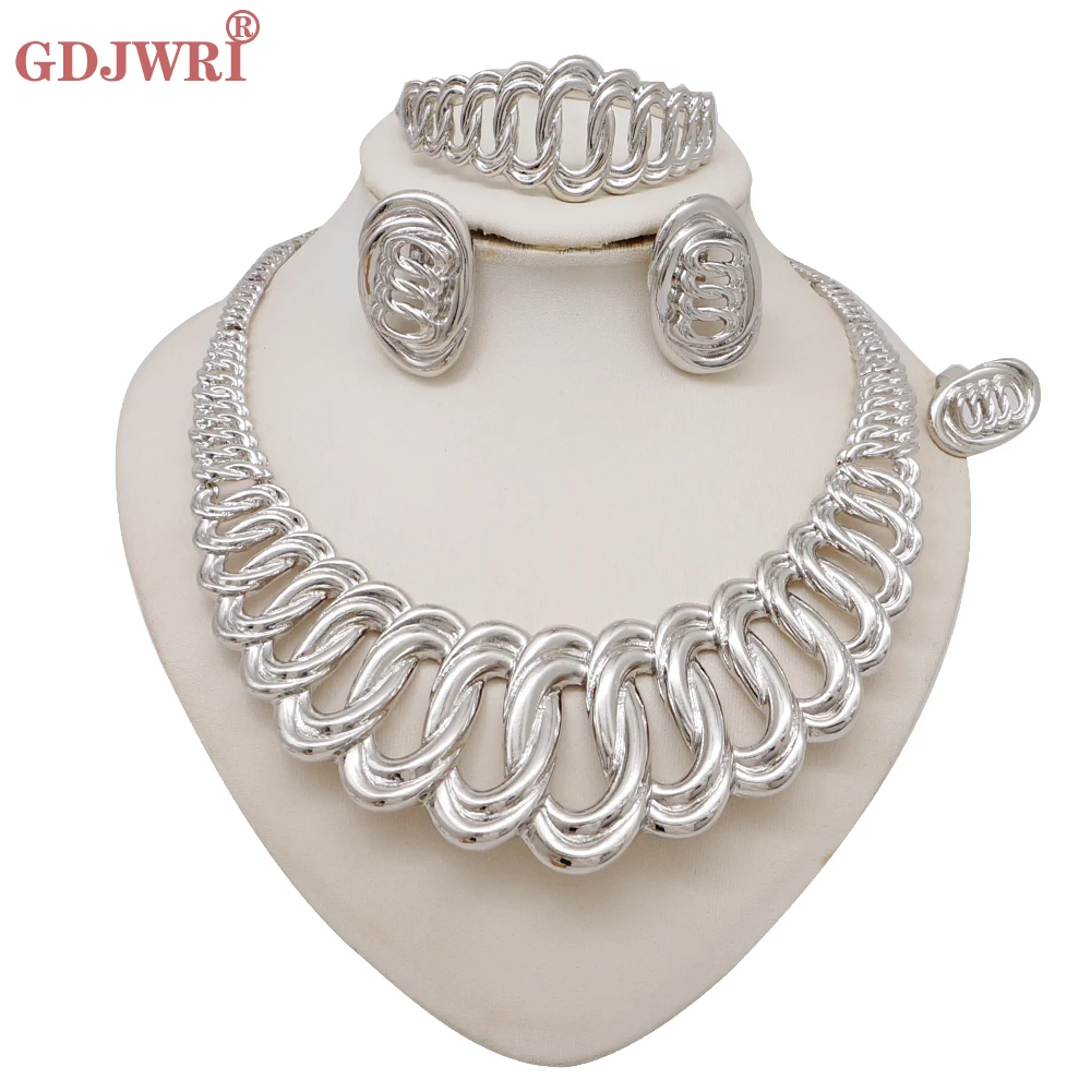 Trend Dubai Sliver Color Jewelry Sets For Women Big Necklace African Jewellery Set For Women Italian Bridal Wedding Accessories $11.93