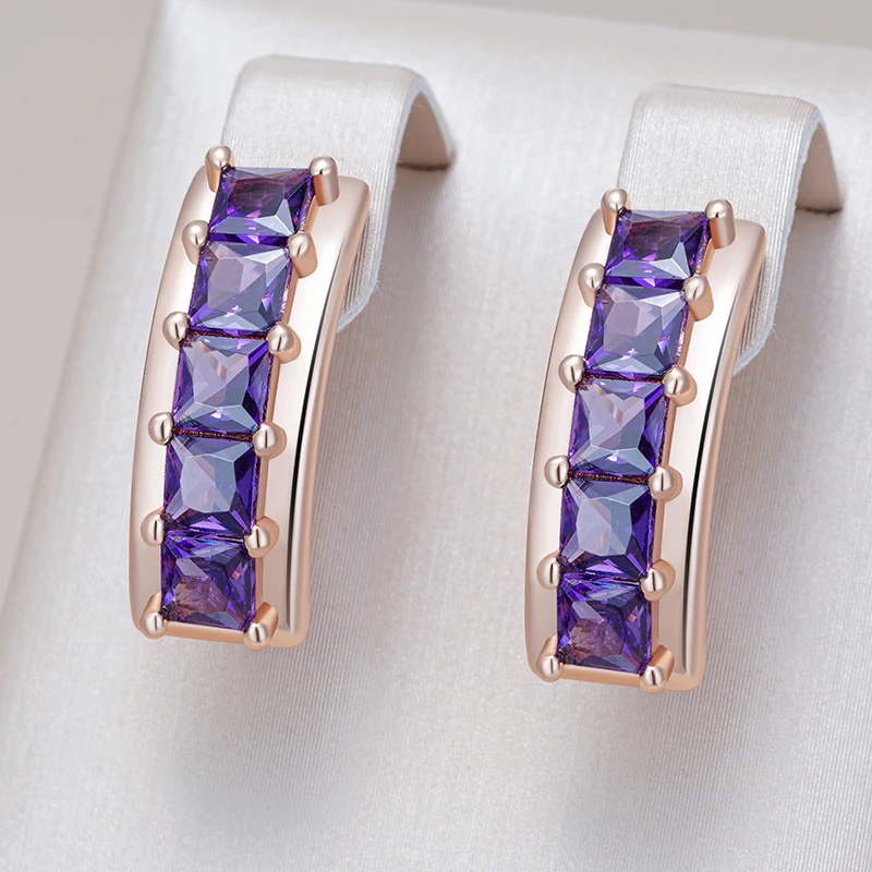 Kinel Hot Shiny Square Purple Natural Zircon Drop Earrings For Women Trend 585 Rose Gold Color Bride Wedding Jewelry Best Gift $3.13