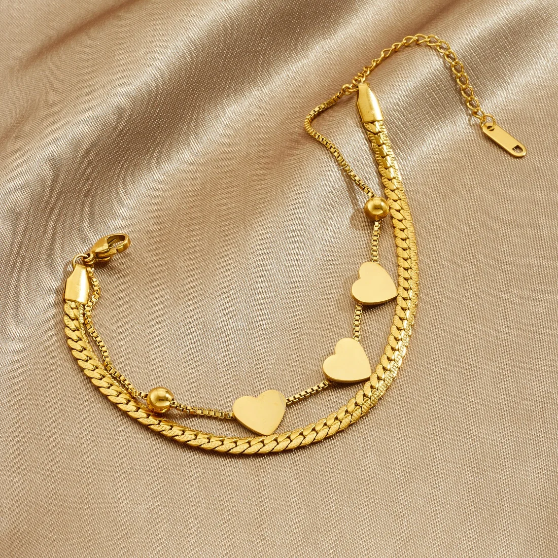 XIYANIKE 316L Stainless Steel Exquisite Double-Layer Chain Heart Beads Bracelet Women Romantic Trend Waterproof Jewelry Gifts $2.07