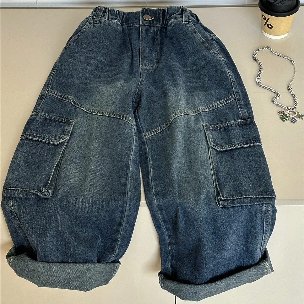 Boys Pants 2026 Spring and Summer New Childrens Clothing Korean Style Boys and Girls Fashion Soft Cargo Jeans Simple Daily $11.25