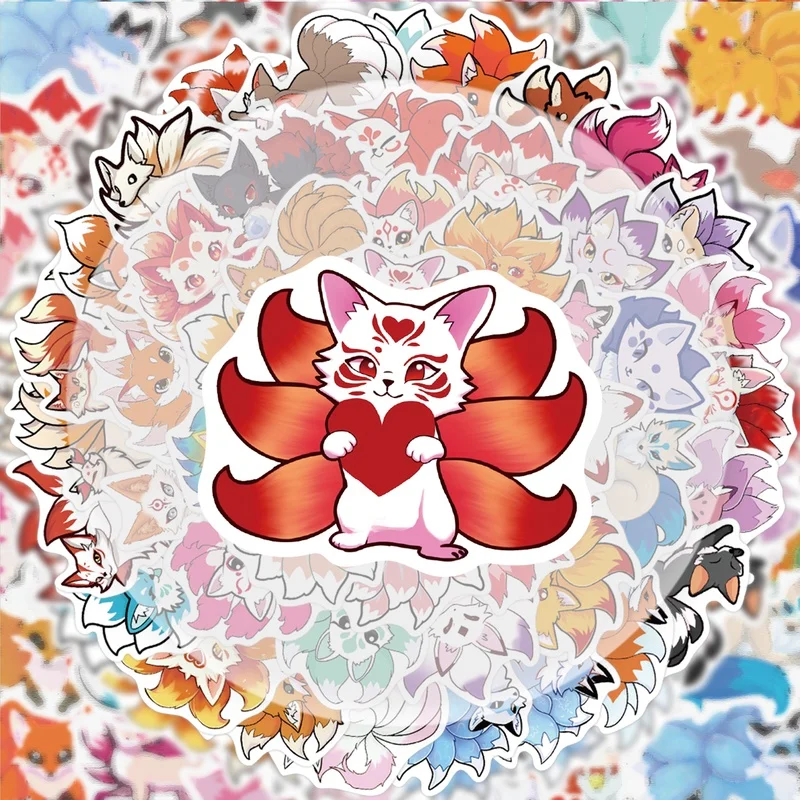 50 Cute Nine-Tailed Fox Graffiti Stickers, Vibrant Stickers Suitable for Decorating Water Bottles, Laptops, Cell Phones, Suitcases, Skateboards, Guitars, Gift Boxes, Party Decorations $3.47