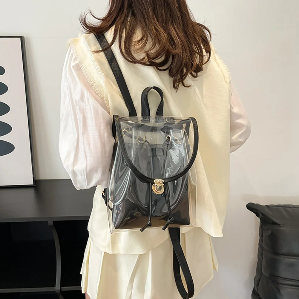 PVC Versatile Jelly Bag Large Capacity Transparent Laptop Rucksack Fashion Outdoor Backpack Hiking Travel Camping Bag $26.37