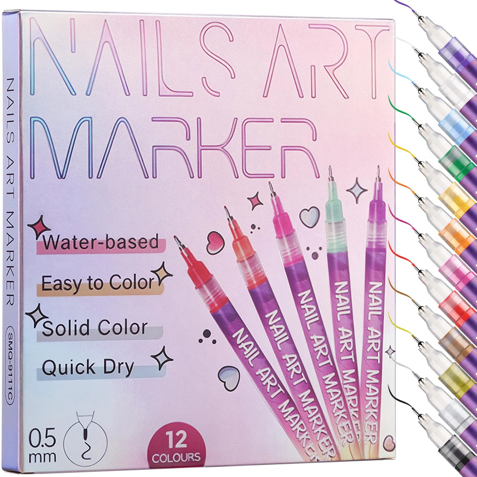 12 Shades Nail Art Pen Kit,2026 New Trend Nail Art Markers Fit for Gel Nails,DIY Nail Art Design Drawing Painting Liner Pen $9.33