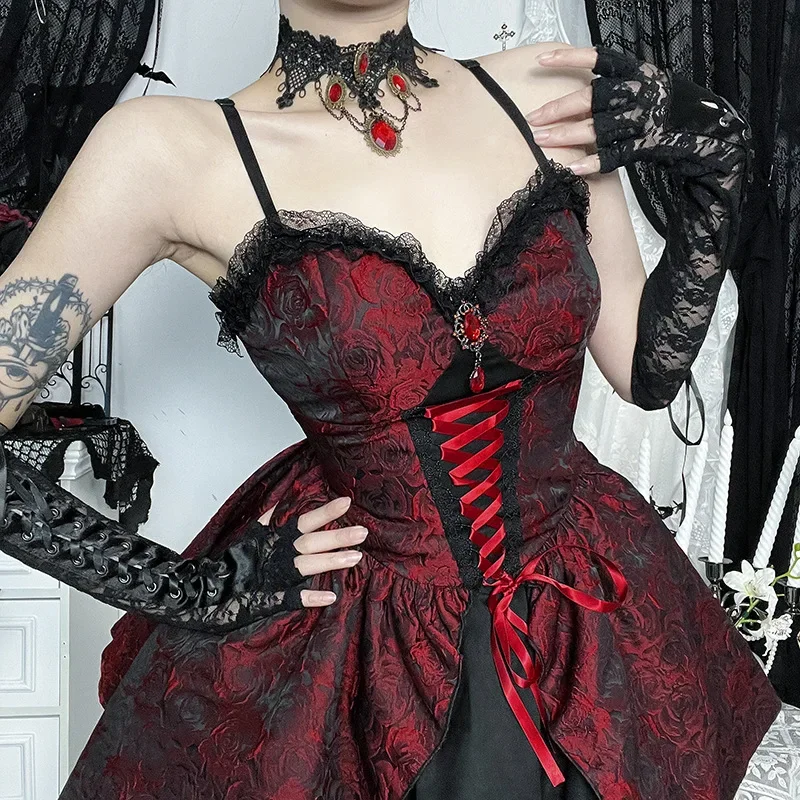 2025 New Vintage Dark Gothic Lolita Dress Women Harajuku Streetwear Aesthetic Fairy Grunge Lace Patchwork Bandage Corset Dresses $25.24