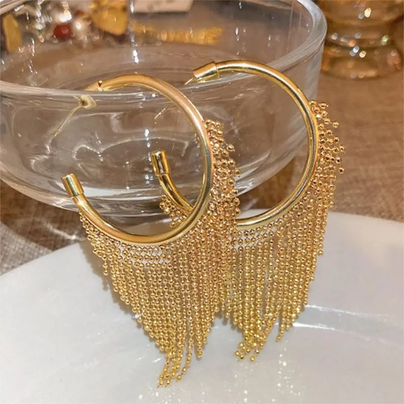 Tassel Earrings Fashion Trend Earrings Bohemian Jewelry 18K Women Geometric Round Punk Earrings Thick Hoop Earrings Party Favors $4.19