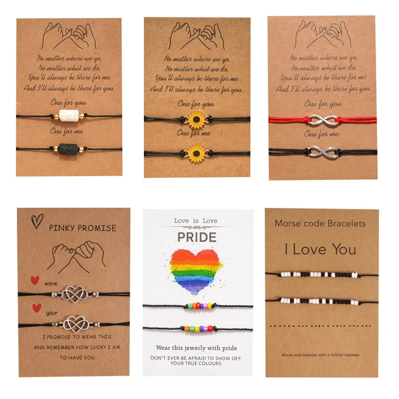 2Pcs Friendship DIY Bracelet Set For Couples Volcanic stone Charm Bead Bangles Women Man Lucky Wish Card Jewelry $3.06