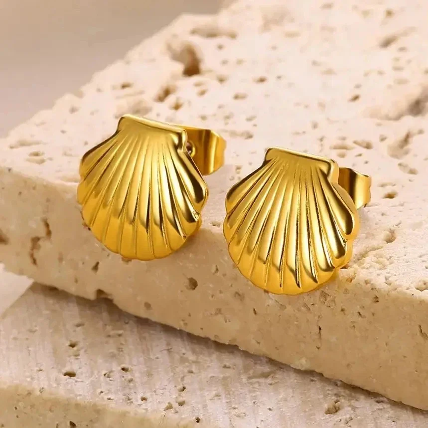 Stainless Steel Shell Earrings For Women Gold Color Vintage Shell Piercing Stud Earring 2024 Trend Summer Beach Ocean Jewelry $3.23