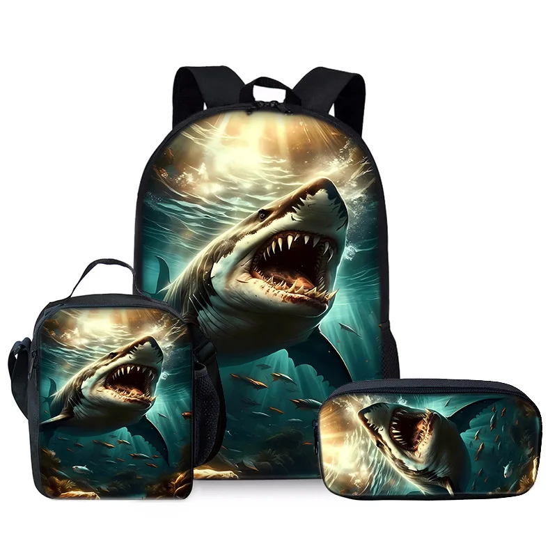 Hip Hop Popular Novelty shark 3D Print 3pcs/Set Student School Bags Laptop Daypack Backpack Crossbody Lunch bag Pencil Case $22.44