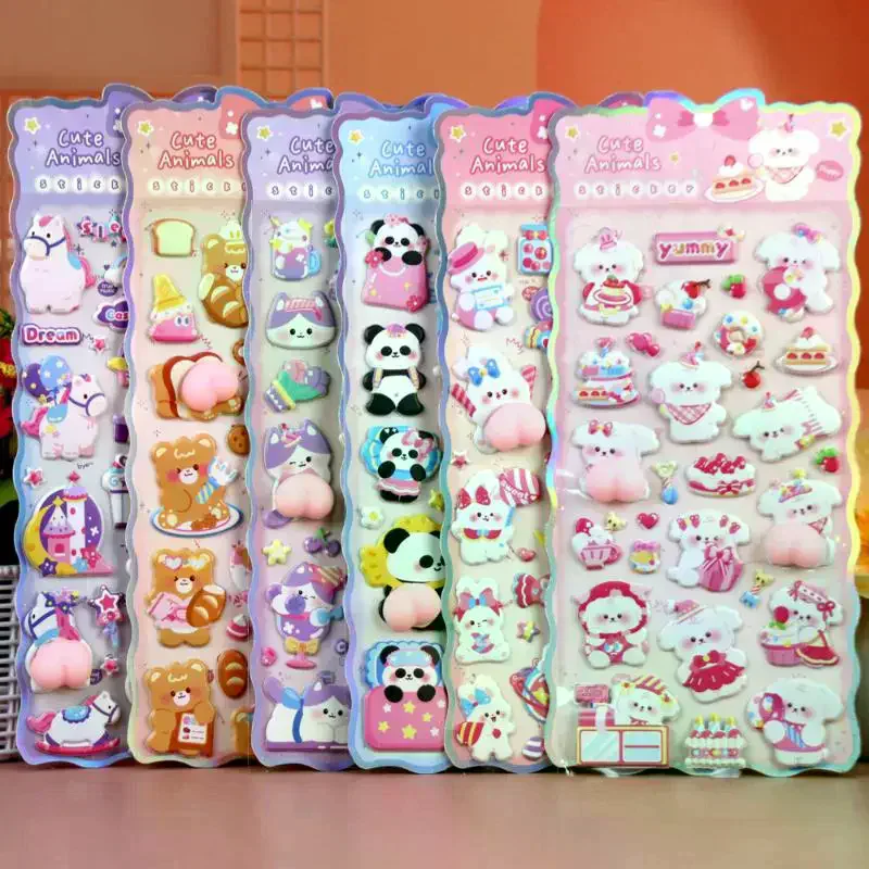 Kawaii Cartoon Animal Dog Cat 3D Soft Puffy Butt Stickers Cute DIY Phone Case Notebook Laptop Decoration Decal Decompression Toy $3.27