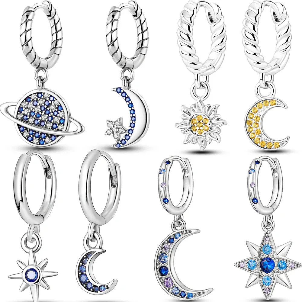 Silver Plated Star Sun Charms Stud Earrings For Women Grils Kids Elegant Wedding Jewelry Gift pendientes mujer moda $3.95