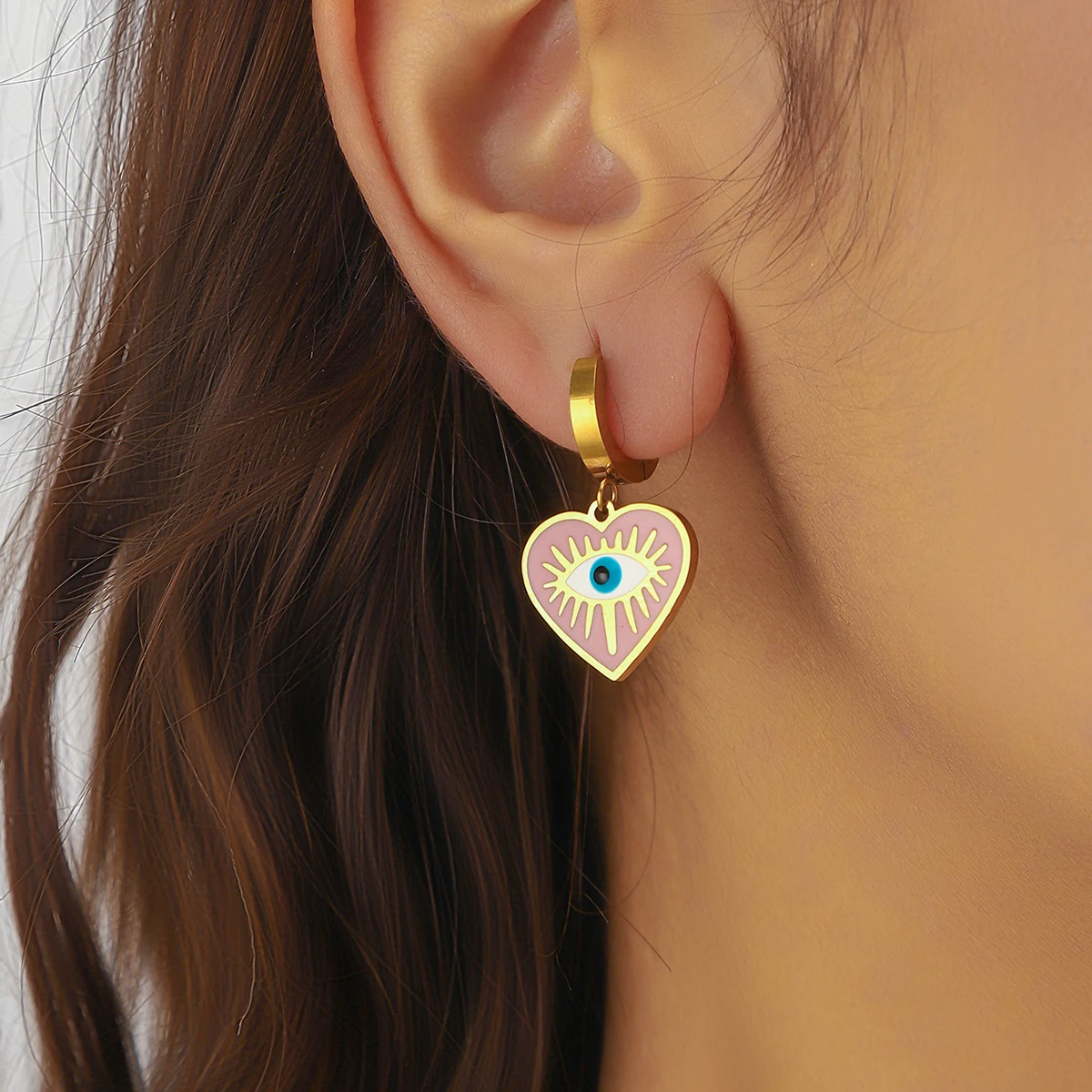 316L Stainless Steel Pink Heart Devil's Eye Earring For Womens New Trend Fashion The Devil's Eye Ear Buckle Jewelry Gift $4.54