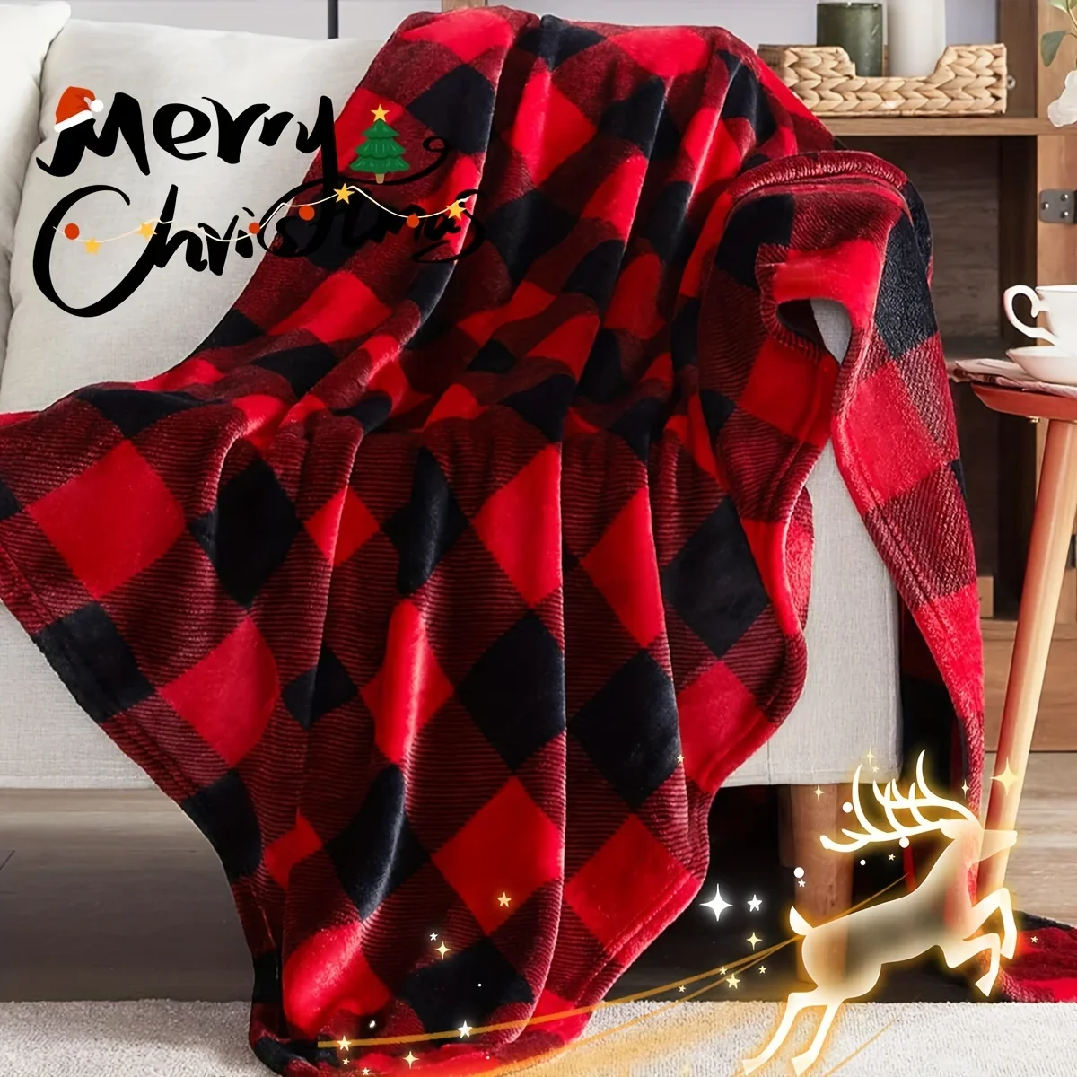1 manta a cuadros de franela gruesa con temática navideña y de Halloween, multifuncional, suave y cómoda, perfecta para $13.38