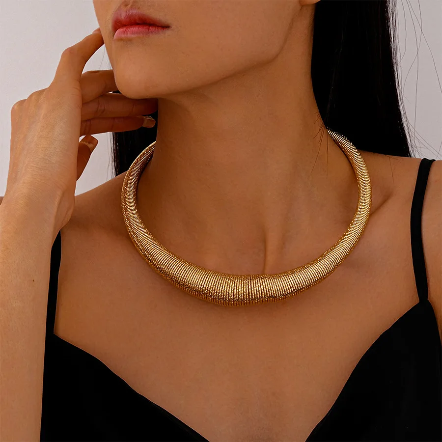 Exaggerated Heavy Metal Chunky Torques for Women Trend Gold Color Punk Thick Chokers Necklaces Grunge Party Strand Jewelry F $6.14