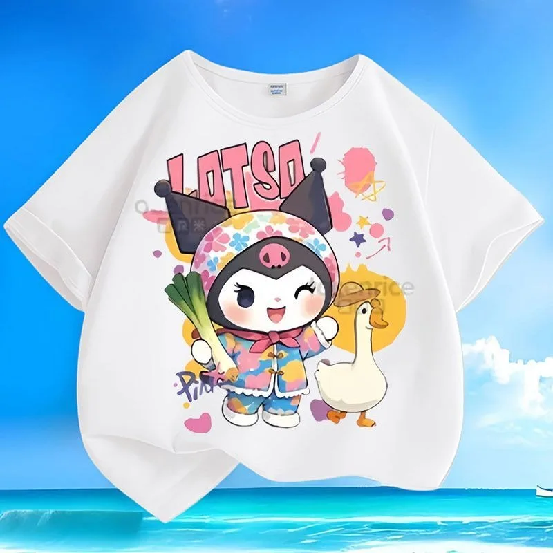 Nueva camiseta infantil de moda de verano 2026 con estampado de Sanrio, corte holgado y manga corta cómoda. $5.60