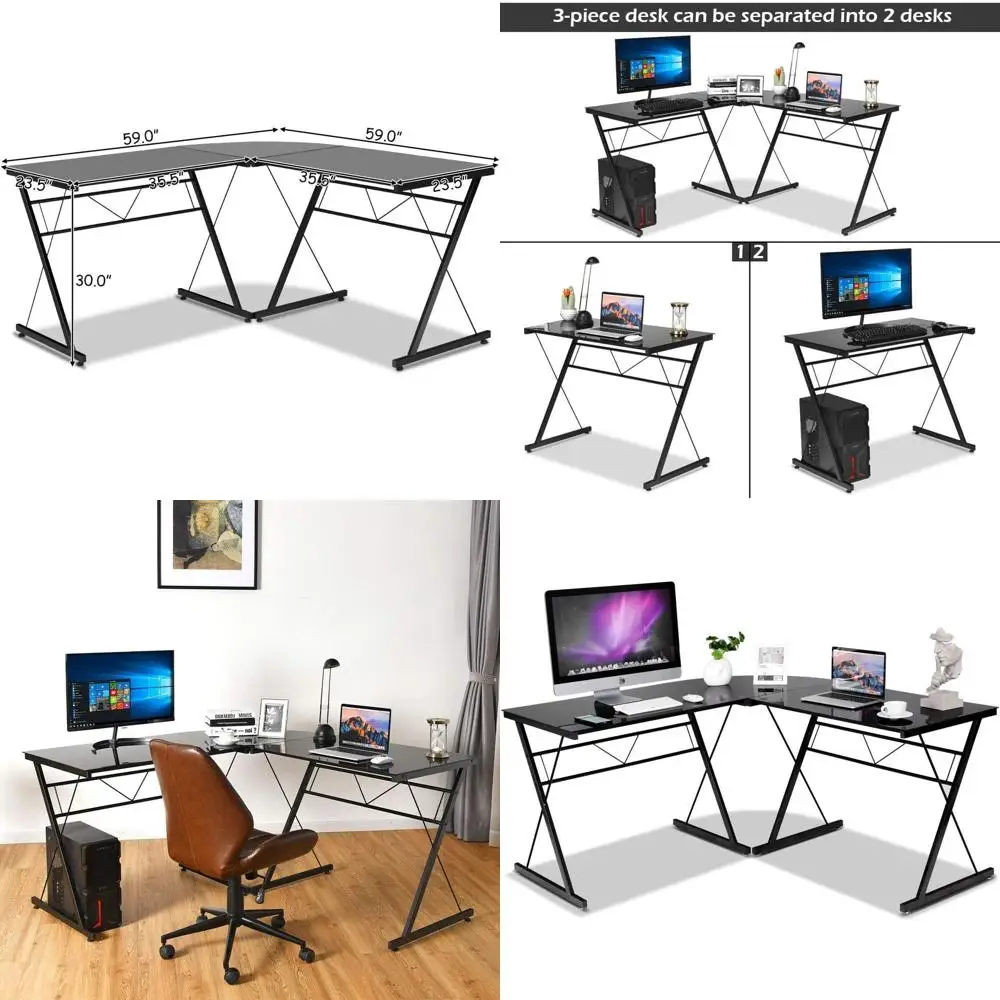 L-Shaped, , ern Simple Style 3-Piece Metal e Study Laptop Desk Writing Gaming Table, Computer Workstation Top, Home Oice Studio, $390.15