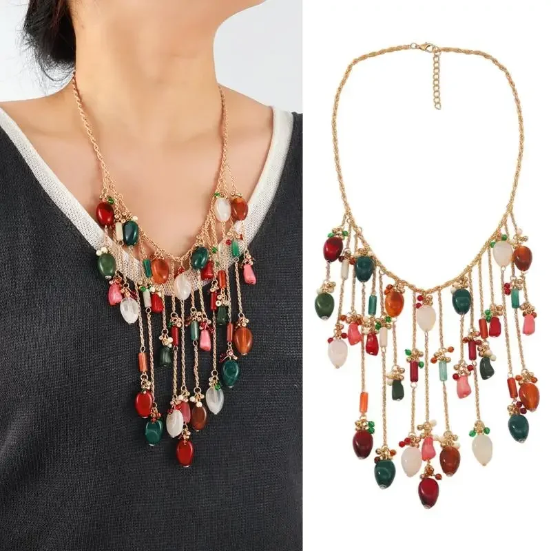 1Pcs Personality Stone Beads Waterfall Long Tassels Necklaces for Women Fashion Jewelry Neck Accessories 2025 Trend New $7.42