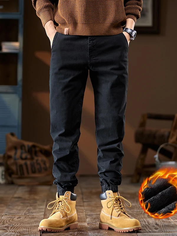 Men's Fce Lined Elastic Waist Cargo Pants Casual Loose Fit American Retro Sle Winter Faion Trendy Brand Loose Long Tro... $27.25