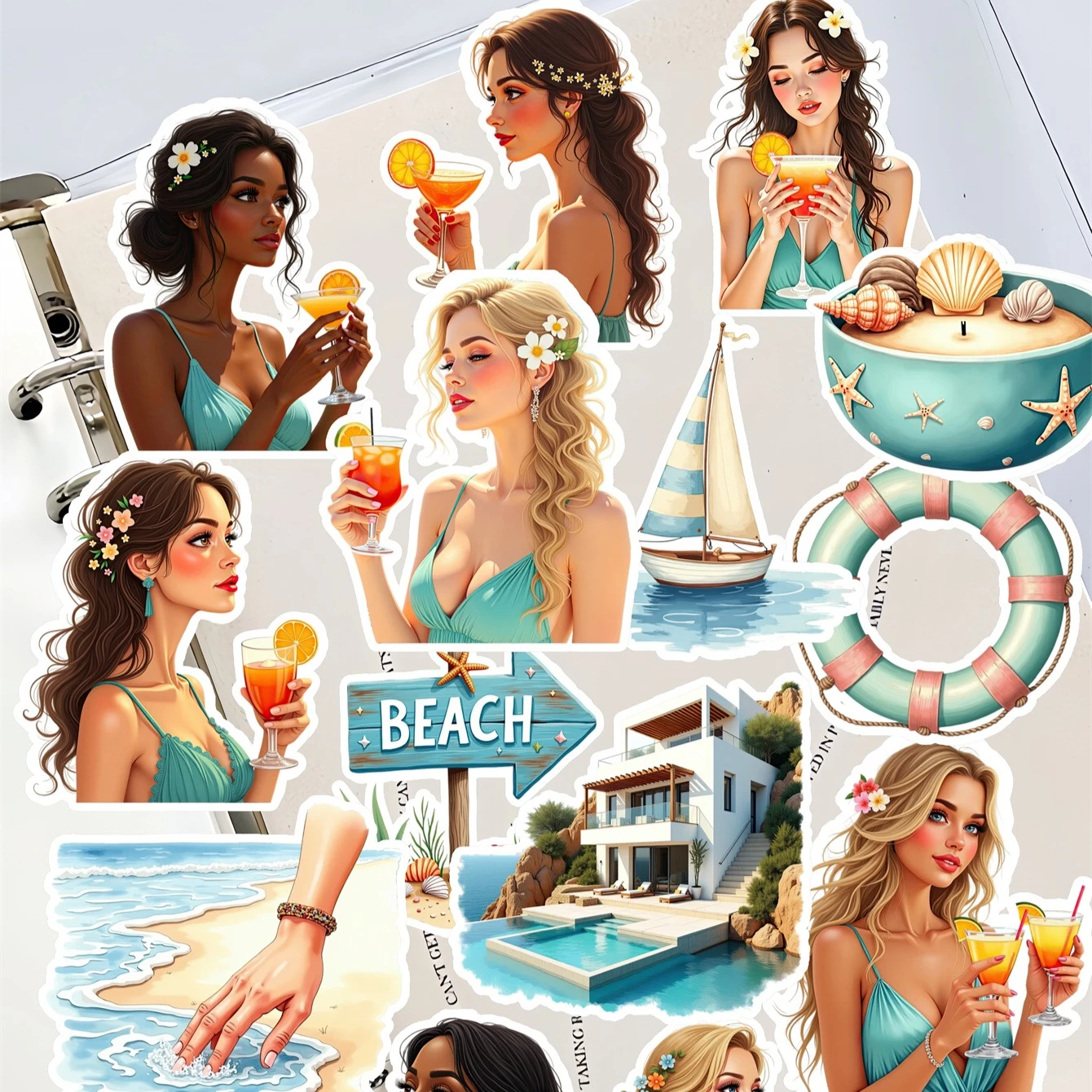 17pcs beach vacation beauty stickers for DIY journals, planners, laptop decorations, book , planner , high-quality prints $3.29
