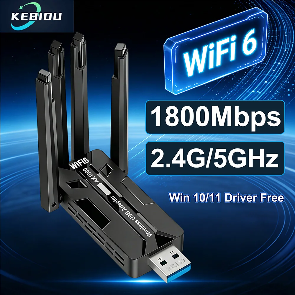 Kebidu AX1800 WiFi USB Adapter WiFi6 Dual Band 2.4G 5Ghz 4 Antenna USB Dongle WPA3 MU-MIMO Wireless Card Receiver for PC/Laptop $13.72