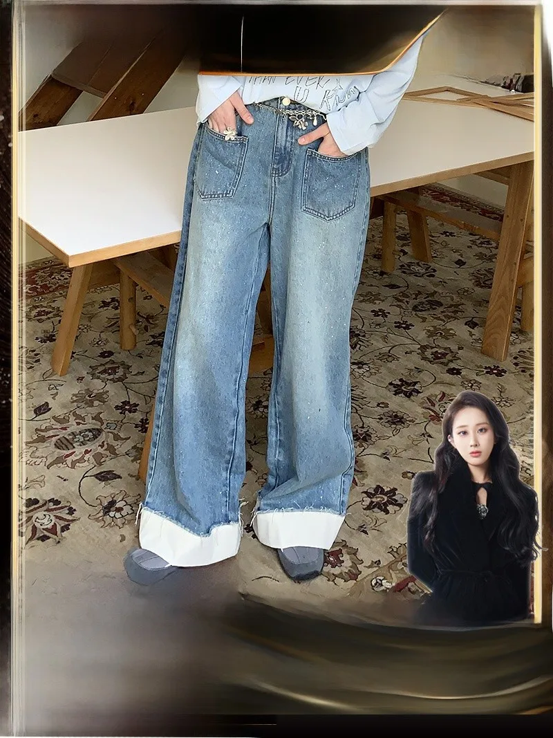 DIDDI MODA Casual Mid-Length Jeans Women's Faionable Mustache Split Denim Pants Ele Luxury Straight Leg Trousers $99.18