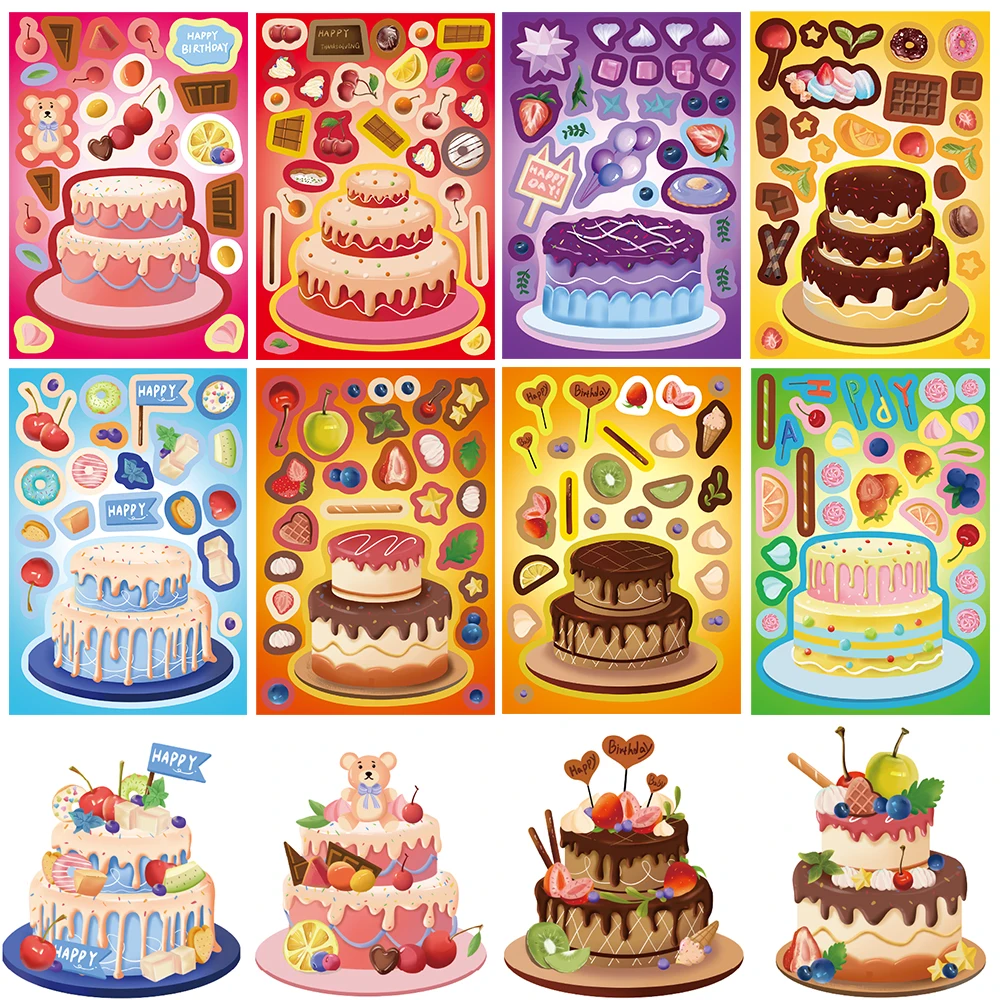 8PCS Cute Cake Collage Sticker Retro Laptop Assembly Puzzle DIY Cartoon Coffee Luggage Stationery Harajuku Puzzle Stickers $3.21