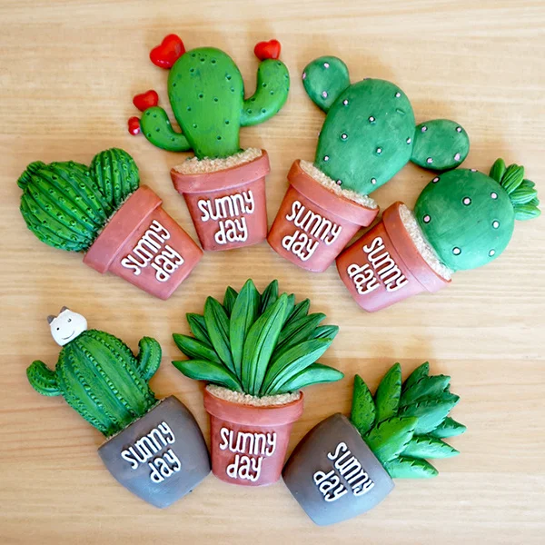 Succulent Cactus Fridge Magnet Sticker Creative Resin Plant Decor for Kitchen Home Wall Car Laptop Snowboard Surfboard Guitar $3.76