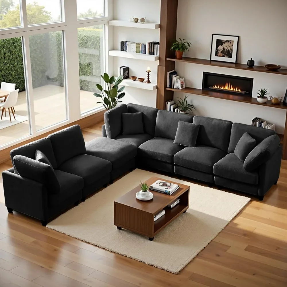121'' 7-Seater Chenille Cloud Couch with Movable Ottoman L/U-Shape Modern Upholstered Sectional Sofa for Living RoomCustomized $423.11