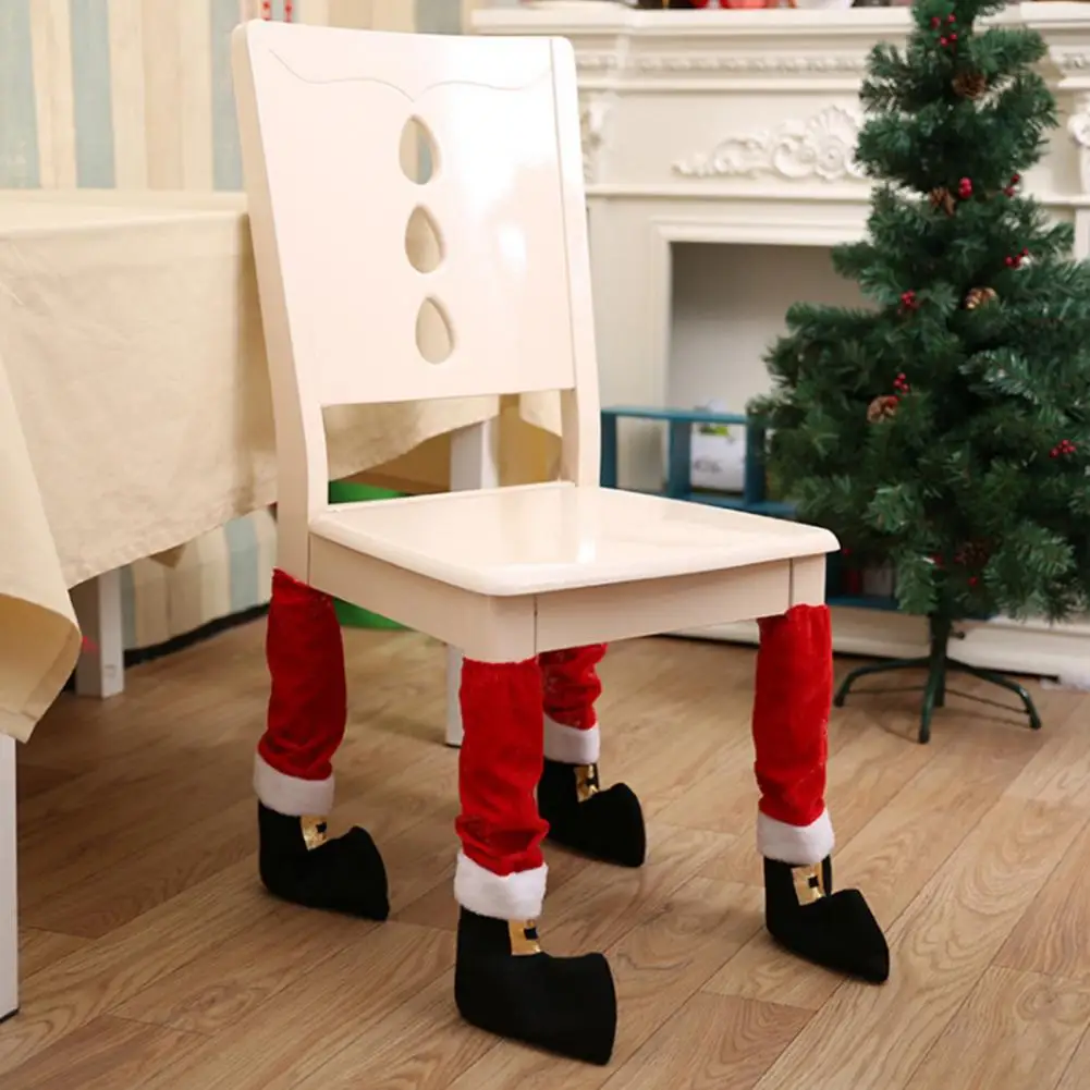 4/8 Pcs Christmas Chair Leg Covers Santa Claus Elf Boot Table Legs Socks Dining Chair Slipcover Furniture Feet Covers For Xmas $2.68