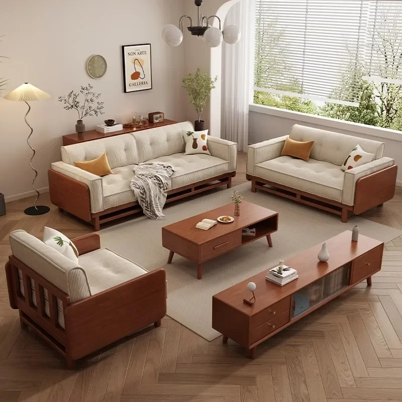 Modern Outdoor Patio Furniture Classical Upholstered U-Shape Couch Set Solid Teak Wooden Sofa $881.66