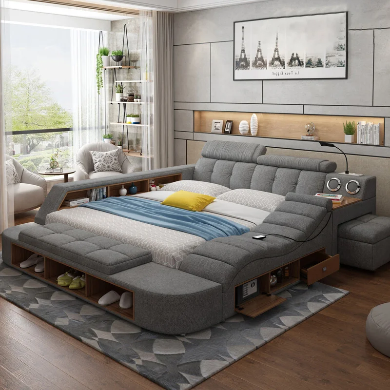 Tatami Upholstered Smart Bed Massage Leather Double Bed Multi-functional King Size Bedroom Furniture Sets Bed $751.68