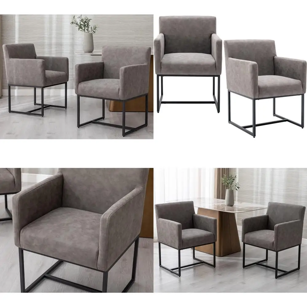 Mid Century Modern Faux Leather Dining Chairs with Arms, Set of 2, Padded Kitchen Chairs with Black Metal Frame $252.88