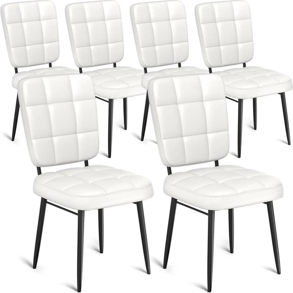 Leather Dining Chairs Set of 6, Upholstered Dining Room Kitchen Chairs with Thick Cushion,High Backrest, Metal Legs, Mid Century $179.91