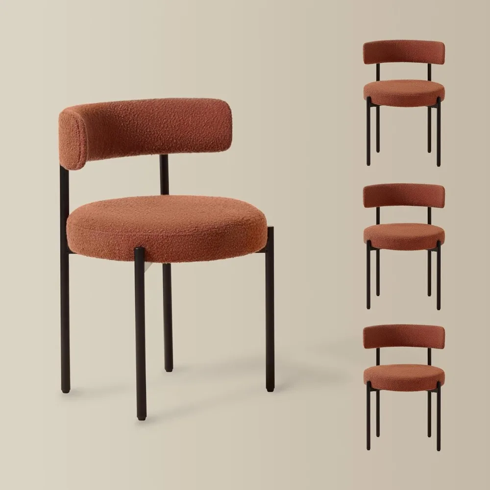 Boucle Dining Chairs Set of 4, Rust Dining Chairs with Upholstered Seat and Round Back, Mid-Century Modern Kitchen Chairs $144.14