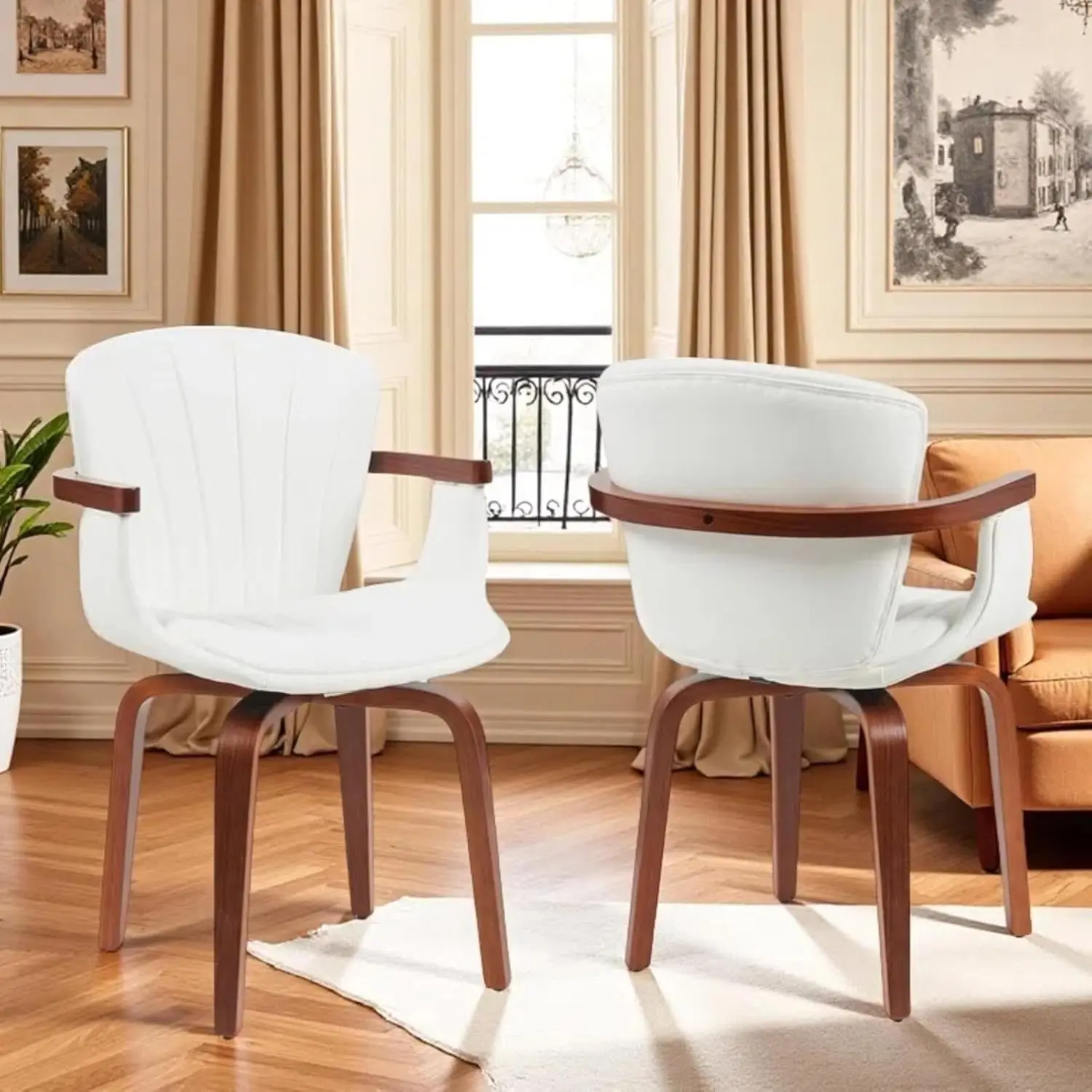 Swivel Dining Room Chairs Set of 2, Mid Century Modern PU Leather Kitchen Chair with Arms, Side Chair No Wheels for, Customized $125.03