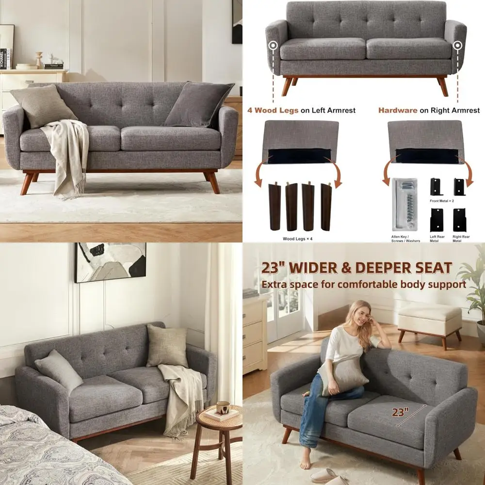 Mid Century Modern Loveseat Sofa, Button Tufted Upholstered Living Room Furniture, 65.2 W, S Size, Comfortable Seating Option $362.24
