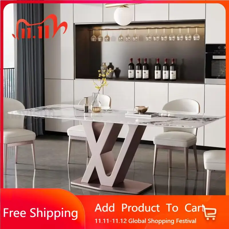 Kitchen Rectangular Corner Dining Tables Extendable Marble Modern Living Room Center Luxury Design Muebles Backyard Furniture $2,918.79