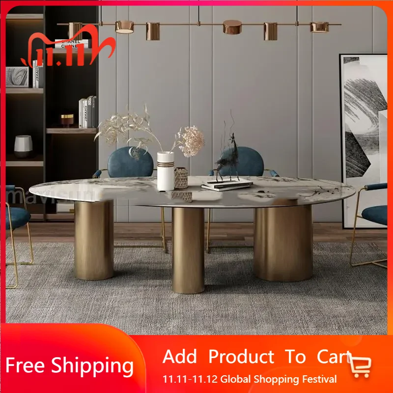 Luxury Dining Table Elegant Tables Kitchen Dinner Rooms Extendable Sedentary Round Multifunction Home Furniture Muebles Oval $653.69