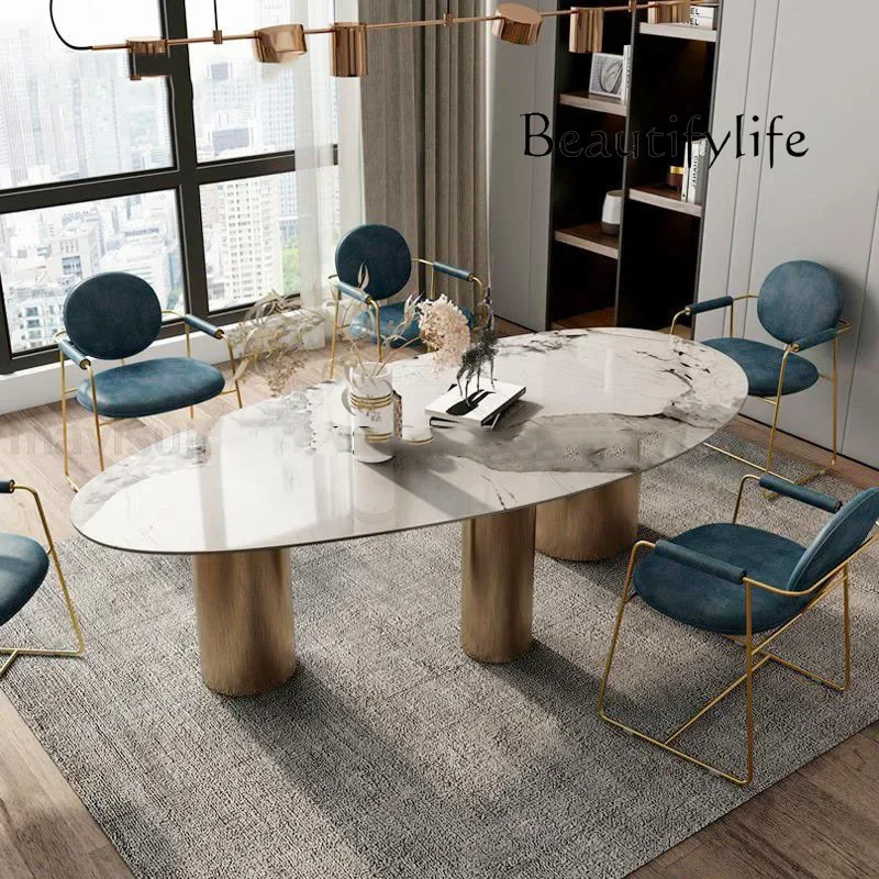 Elderly Slate Dining Table And Chair Combination For Family Modern Minimalist Light Luxury Minimalist Muebles Unique Furniture $721.51