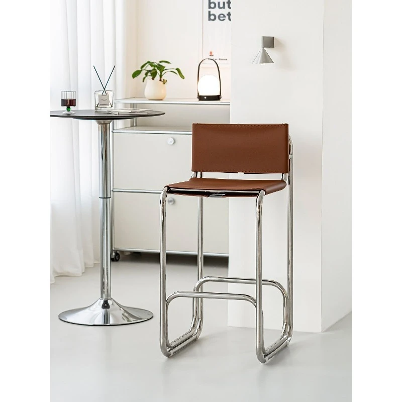 Modern Luxury Saddle Leather Bar Stool Upholstered High Back Chair for Home Kitchen Island Bar Counter Bar Stools for Kitchen $287.42