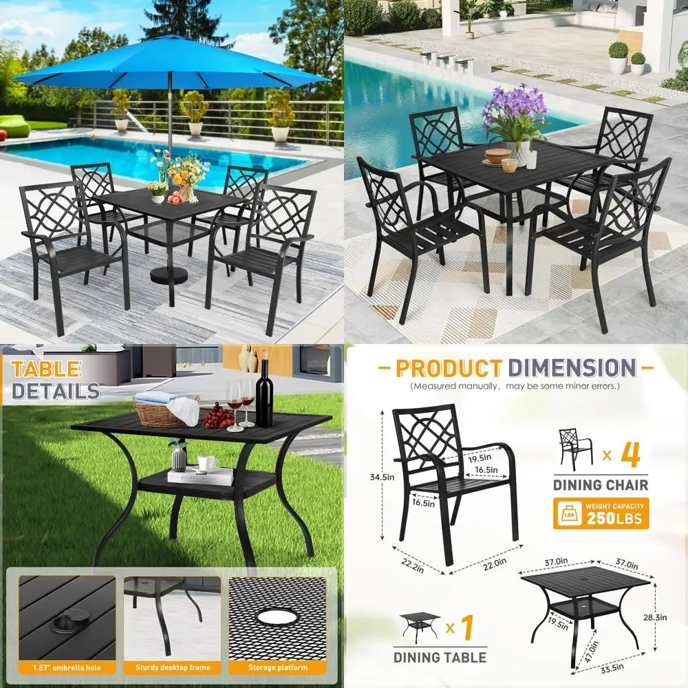Outdoor HDPE Dining Table Set, 7-Piece Outdoor Dining Table Sets with Umbrella Hole Cut-Out Table and 6 Chairs, Gray $739.78