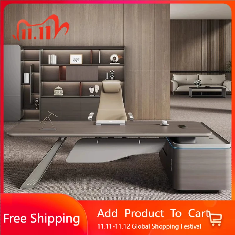 Light Luxury Boss Table Modern European Executive Right Cabinet Gaming Desk Standing Designer Storage Bureau Meuble Furniture $465.50