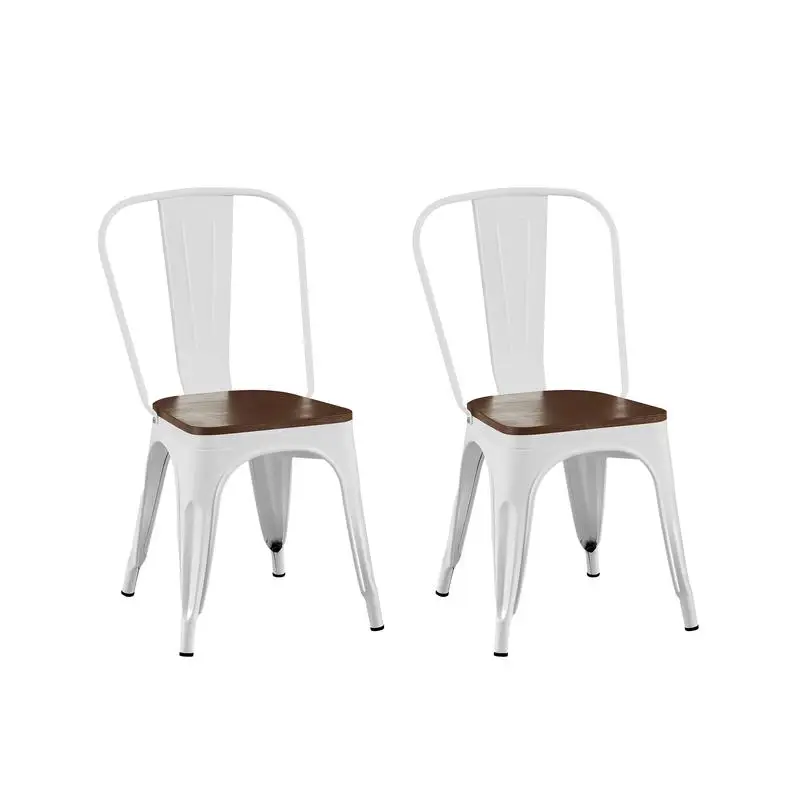Set of 2 High Gloss White & Walnut Seat Metal Dining Chairs, 18” Seat Height, Stackable, Indoor/Outdoor, Lightweight, $156.33