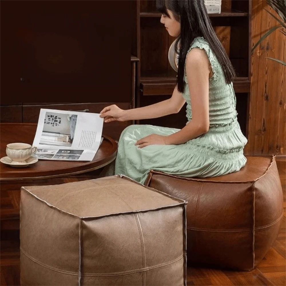 Light Luxury Non-Slip Storage Stool Large Capacity No Fillings PU Leather Ottoman Square Thicken Moroccan Pouf Living Room $7.11