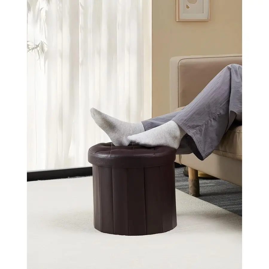 Ottoman with Storage Foot Rest Stool with Thicker Foam Padded Seat Leather Small Round 14 x 14 x 13 Inchs Storage Ottoman Bench $60.58