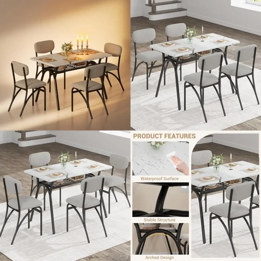 Modern Rectangular Dining Table Set for 4 with Storage Shelf and 4 Upholstered Chairs - Contemporary Kitchen Furniture $170.51