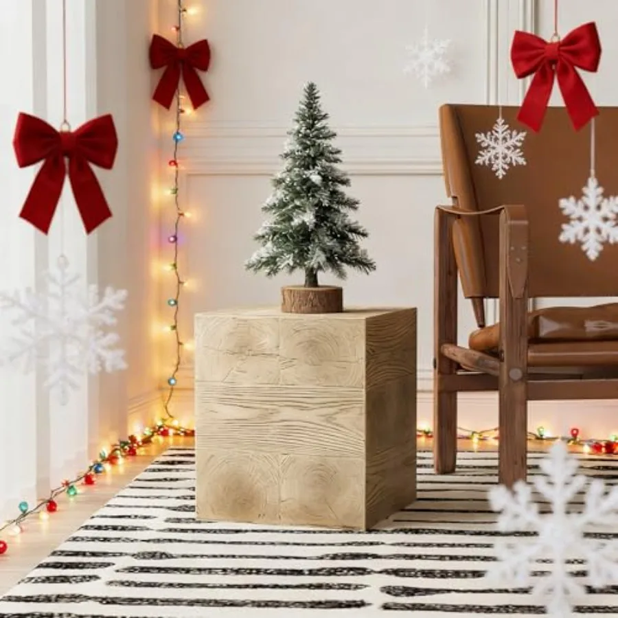 COSIEST Outdoor Side Table Faux Wood Patio End Table Hand-Painted Wooden Plant Stand Stool Ottoman for Deck Garden Yard Indoor $154.04